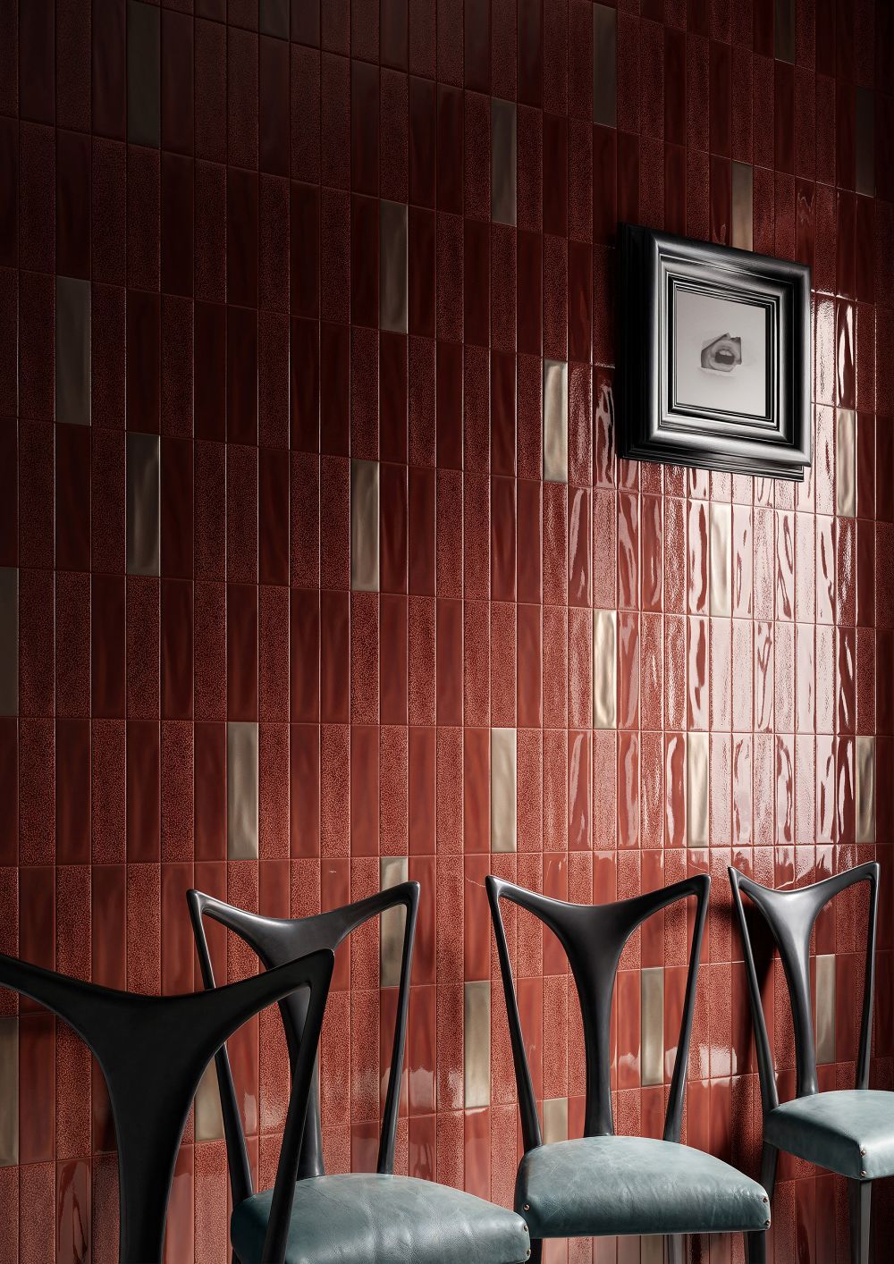 WOW Design’s Terre collection stands out for its range of earthy tones that blend harmoniously, offering a warm and natural palette. These shades pair beautifully with pieces finished in crystalline glaze, creating luminous contrasts. Made in porcelain body and available in 7x28 cm and 11.6x11.6 cm, the series combines matte finishes (Wheat, Sienna, Umber) with glossy glazes (White, Turquoise, Pale Blue, Smoke, Chestnut). (Image courtesy WOW Design)