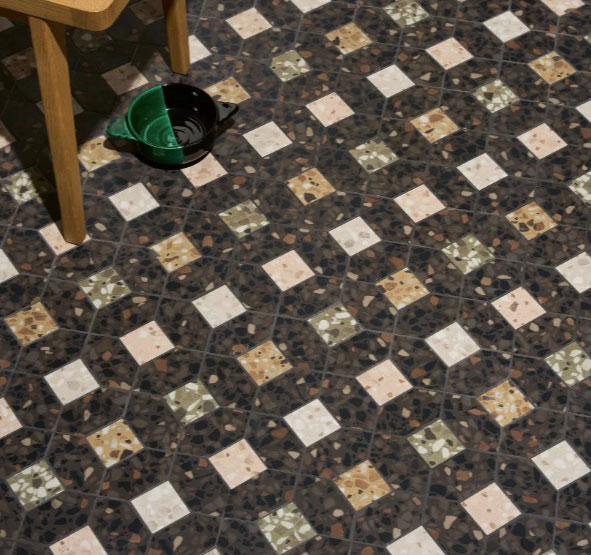 Inspired by Sicily’s native stones, ReGea from Mirage embodies the principles of circular economy. Integrating raw and fired ceramic scraps sourced not only from Mirage’s own plants, ReGea also incorporates post-consumer recycled glass from decommissioned photovoltaic panels. ((Image courtesy Mirage)