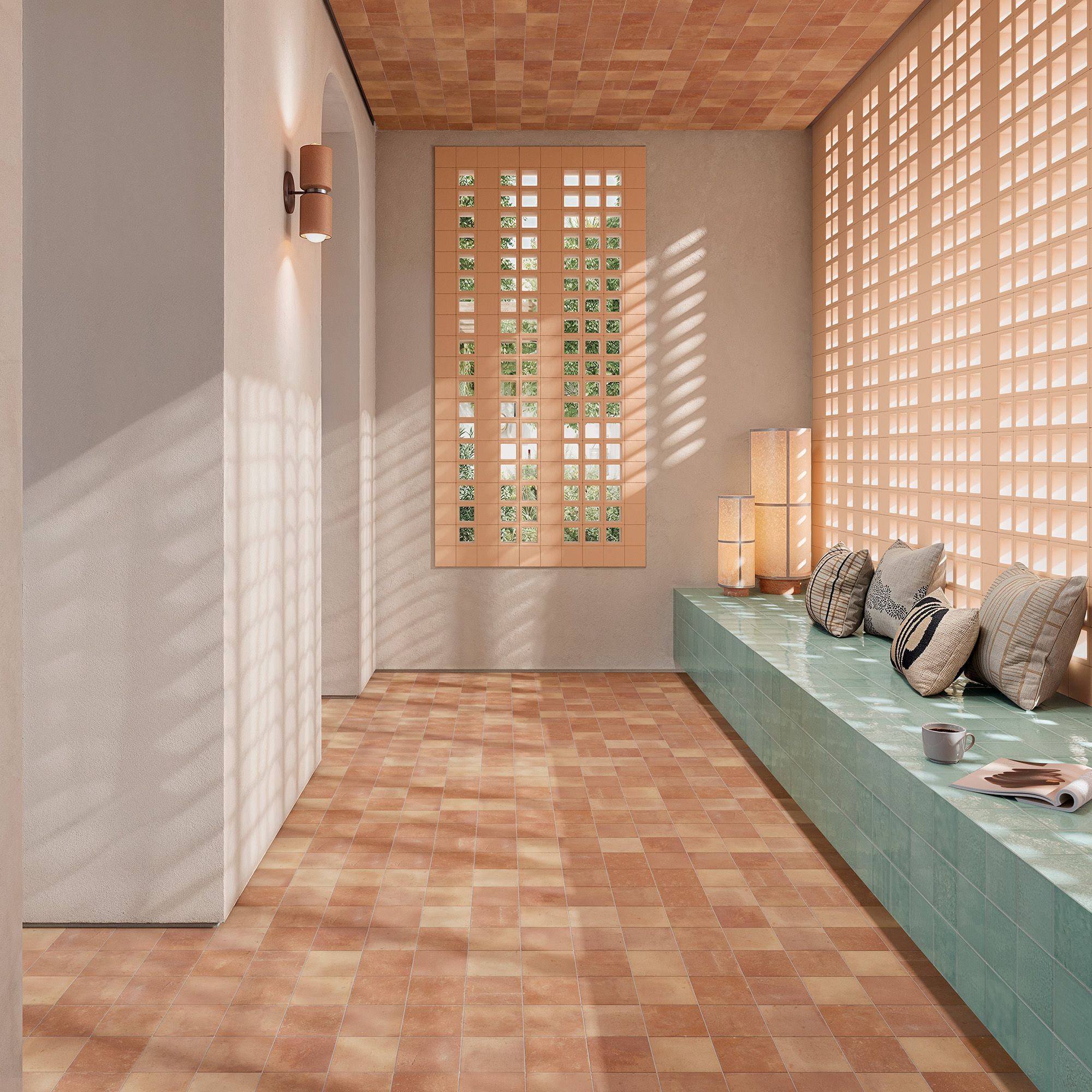 : Decocer’s latest collection, Atlas, embarks on a material journey to the Sahara with its matte porcelain finish. Available in 15x15 and 5x15 cm formats, it combines simple white and terracotta bases with expressive glazed decorations in green, blue, and black, creating spaces full of contrast and timeless elegance. (Image courtesy Decocer)