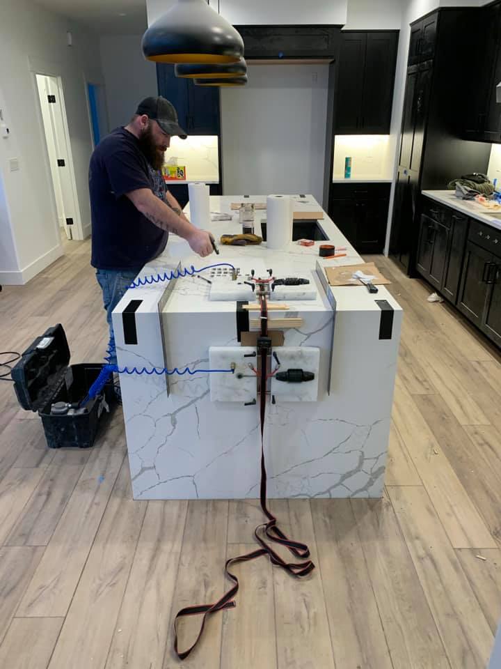 In a time when shopping for many items means going no farther than the computer, obviously stone fabrication equipment doesn’t come that way. Fortunately, Standerfer became acquainted with other shop owners in Alaska, and he started listening to what they were buying and what they were happy with. “That’s how Park ended up on the radar,” he explains. “Like I said, we have a CMS router, and it’s a good machine, but it’s sometimes difficult to get parts out of Italy; it’s a long way to Alaska. Everyone said Park’s service is just off the charts.” The Standerfers began seriously shopping for their saw in 2019, then delayed for a year because of COVID. When the VOYAGER XP finally arrived in 2021, they were more than pleased. “The machine installer provided loads of technical advice and took his time answering any questions we had,” Dave Standerfer says. “He shared tips on things I never would have thought of. We’re thankful for how willing each person from Park is to work with us, from beginning to end.” Standerfer also sent a couple of his crew to train at Park. Not that everything has gone smoothly. For one thing, he had to add a couple more employees – although not necessarily to run the equipment. “The main reason I’ve got more employees is to keep up with installs,” he says. “Obviously, you still have to pick these things up, get them in the house, get them placed and get the faucet holes and outlet holes cut and lined up properly. There’s no avoiding that.” However, if the install seems to call for a third person, he’ll send out one of his machine crew. And, on occasion, he’ll run a second crew headed by his templater and one of the shop team. “Then, I’ll stay here and watch the machines, but we try not to do that,” Standerfer says. “It definitely slows down what’s coming out of the shop.” And he’s noticed that that once almost-new router has become the shop’s bottleneck. “But that’s a good problem,” he says. “We’ve speeded up production 30% to 40% because of the saw. It could do more than that, but the router can’t keep up. The only way to get more out of the router would be to go to a second shift, and at this point I can’t justify that.” These days Standerfer’s biggest problem may be lack of space. The shop is in a 2,400 ft² building that he rents. A couple of years ago, a building came up for sale just down the road that would have given him quadruple the space. However, the seller pulled it off the market, and offered to rent it to him at $8,000 a month. Regretfully, Standerfer walked away, but he still hopes to be able to relocate into a space large enough to be able to stock some material and buy a backsplash machine. “That’s the next big thing that I fantasize about, but until I get into another building there’s no way I’m going to be able to pull that off,” he says.