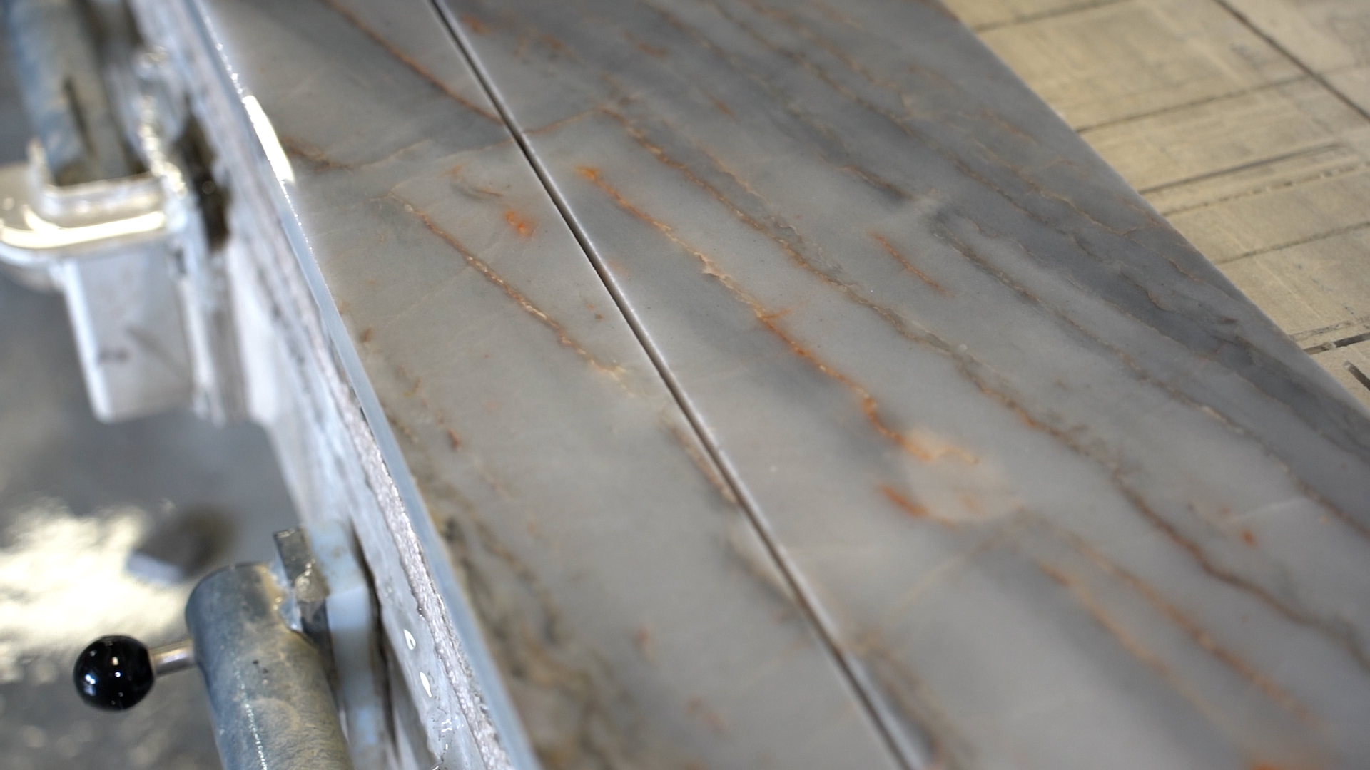 When Standerfer entered the stone industry, he admits he was mostly looking to buy himself a job. After leaving British Petroleum in 2010, he worked as an independent consultant. Then, in 2015, that work dried up. Oil prices fell, and the jobs in his field were in places like Oklahoma and Texas. “At that point, I had two kids in high school and very close to graduating,” he explains. “And we love living here. Through a mutual friend, we found out about this place being for sale, and we took a chance and bought it, even though I had never even been in a granite countertop shop before coming by and looking at the place and meeting with the previous owner.” Standerfer describes the purchase as “a crazy risk,” especially since the seller trained him for about a month, then took off for his next career owning a charter fishing business before the sale had even closed – leaving Standerfer in charge of a business he didn’t own. “It was about a month that I worked for him like that,” Standerfer explains. “At that point, I was running the show – kind of – but still reliant on the guys who had been here prior to me arriving.” Even today, he admits he’s not as good as his employees when it comes to watching the machines, keeping them fed, and pulling the pieces off. In much the same way, he says Audrey is the chief numbers-cruncher for the operation, handling the accounting and analyzing data. “I’d be lost without her,” he says. However, given his background, it’s not surprising there were things going on in the shop that caught his eye. Among them was the manual bridge saw. For one thing, it required the attention of one employee every minute it was in operation, which is not a good situation in a shop with four workers. “It just didn’t pencil out,” Standerfer says. “Plus, it really couldn’t do miters. Or, rather, it could, but they weren’t accurate, and they didn’t look very good, so we tended to steer people away from doing miters.”