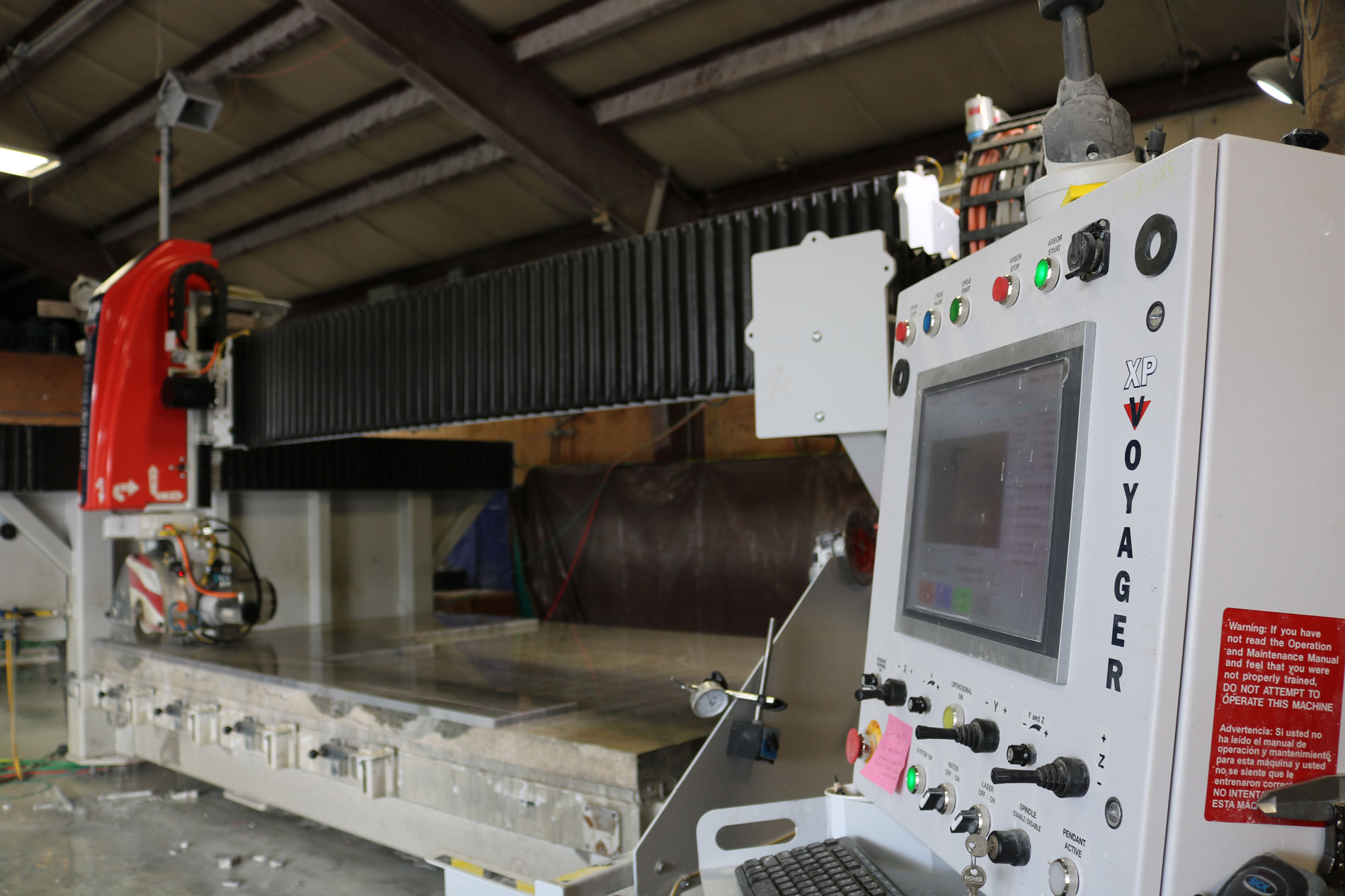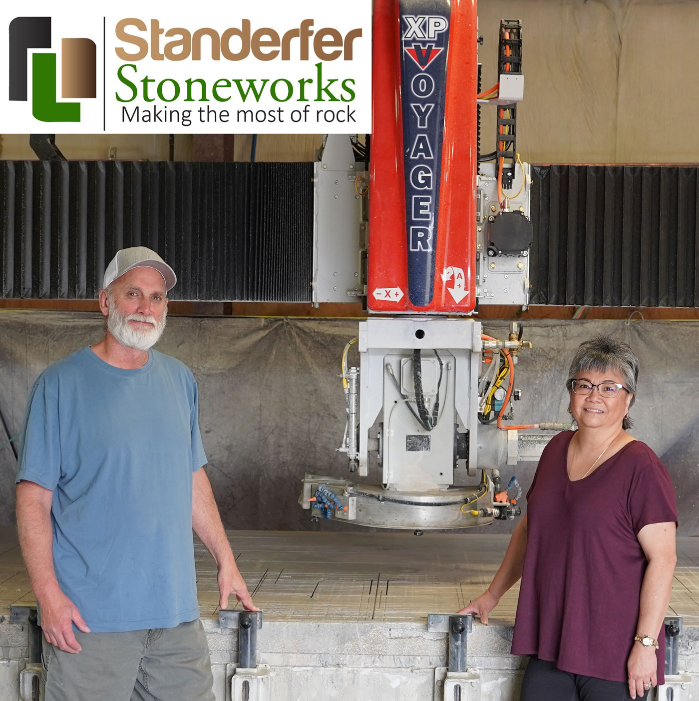 SOLDOTNA, Alaska – Dave Standerfer appreciates automation. The owner, with wife Audrey, of Standerfer Stoneworks, spent the bulk of his working career as an engineer in the petroleum industry working on automating operations and systems. When he bought an existing business, its pride and joy – and subsequently his – was an almost new CNC router. Now, with the 2021 purchase of a Park Industries® VOYAGER™ XP CNC saw, Standerfer is faced with the reality that the router really can’t keep up with the new saw. Things might be a little easier if he felt he could add a second shift, or move his operation to a larger space, but in a community of fewer than 5,000 people, neither option seems like the right answer – at least for now. Standerfer readily admits his operation is a small shop in a service area that’s short on people, but large on territory. He serves customers within a 100-mile radius across the entire Kenai Peninsula about three hours south of Anchorage. “The business I bought [in July 2016] is basically the same as it is right now,” he says. “I’m in the same building, and it’s a small building. When I bought the business, it had an almost brand-new CMS Brembana Speed router – less than a year old – and a really old manual bridge saw.”