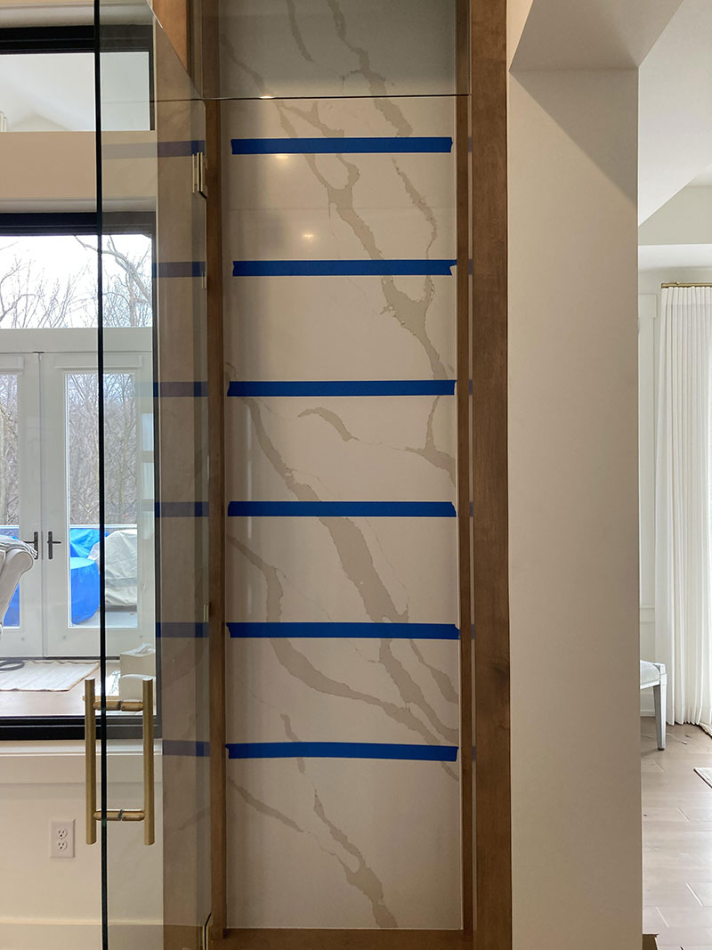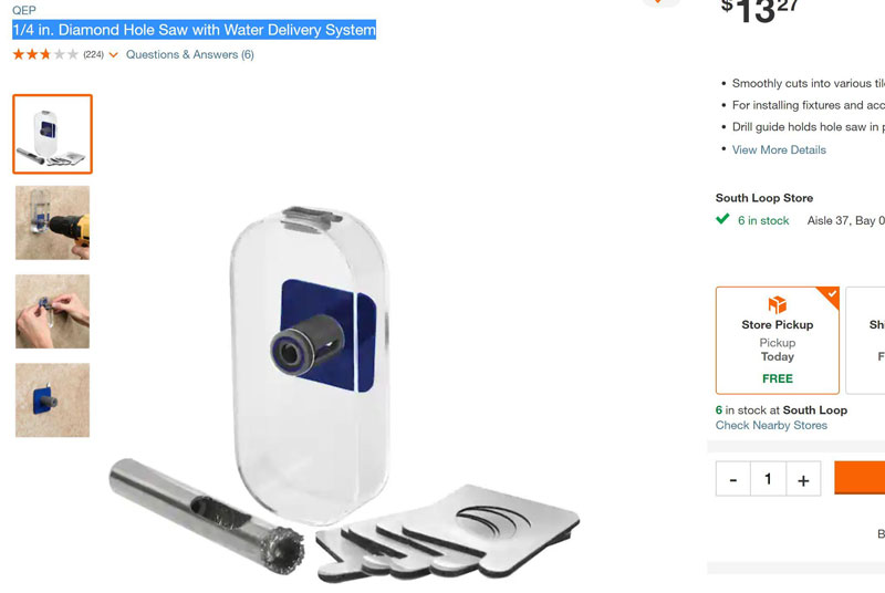 I have a situation: We installed a 10' piece of quartz vertically inside a custom build wine rack, and that rack was then encased in glass; It turned out really well and looks awesome. Now, two months later, the builder is asking us to drill attachment points for the racking through our stone to the tune of 32 ¼" holes. It will need to be done on site and in the vertical position since the project is so far-advanced. My idea is to use a ¼" blind core bit attached to an angle grinder, but I'm having trouble finding a water system that can work on site and can be used for a vertical application. My thought was to use a Makita PW5001C polisher and trying to retrofit a water connection that could attach to a standard garden hose, then use a sheet of plastic and tape to direct the water flow into a bucket at the base of the cabinet. Does anyone have experience drilling holes in similar circumstances? I'll take any advice before I start purchasing and modifying equipment. Thanks!