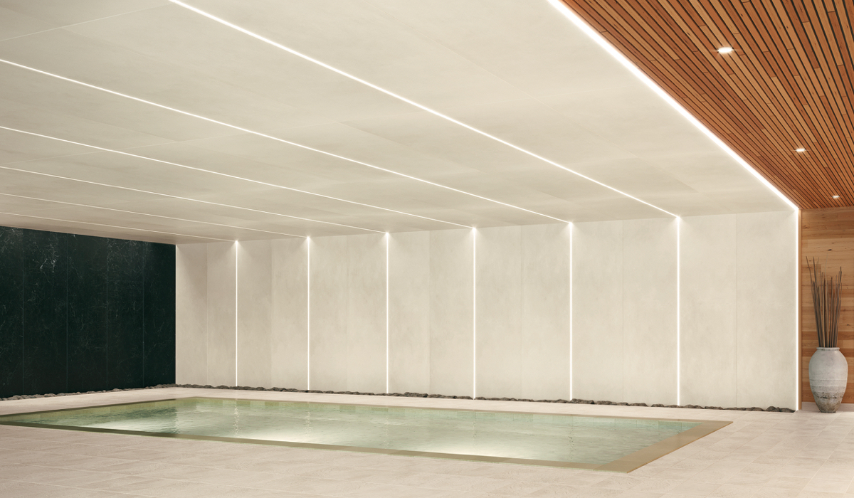 Pantone’s Color of the Year 2026, PANTONE 11-4201 Cloud Dancer, is familiar territory for design professionals. Rather than a conventional white, it functions as a design framework – a near-white that functions in a material-driven role rather than a purely chromatic one. Defined by Pantone as a calming and versatile neutral, Cloud Dancer is set to pair seamlessly with tile’s inherit strength in texture, surface expression, light response, and long-term performance. Within the design community, the announcement of Cloud Dancer prompted an immediate and polarized response. While some professionals embraced its clarity, luminosity, and understated simplicity – viewing it as a refined neutral capable of elevating richly saturated accents – others reacted with skepticism, questioning the choice for its perceived restraint. The reception ranged from quiet indifference to genuine surprise, underscoring the divide between those who value calm versatility and those seeking a more expressive directional statement. By contrast, previous Pantone Colors of the Year were met with far more unified enthusiasm. Viva Magenta (PANTONE 18-1750), the 2023 selection, was widely celebrated for its boldness and emotional intensity, while Very Peri (PANTONE 17-3938) in 2022 resonated with designers and architects for its forward-looking, creative energy. For architects, designers, distributors, and retail showroom teams, the opportunity is unmistakable: position Cloud Dancer as a unifying element that bridges warm minimalism, the ethos of quiet luxury, and the increasingly tactile sensibility shaping 2025–2026 interiors. Tile is uniquely suited to this role, offering a material-driven way to express the color through stone-inspired surfaces, plaster-like finishes, satin glazes, subtle micro-reliefs, and the seamless continuity of large-format applications