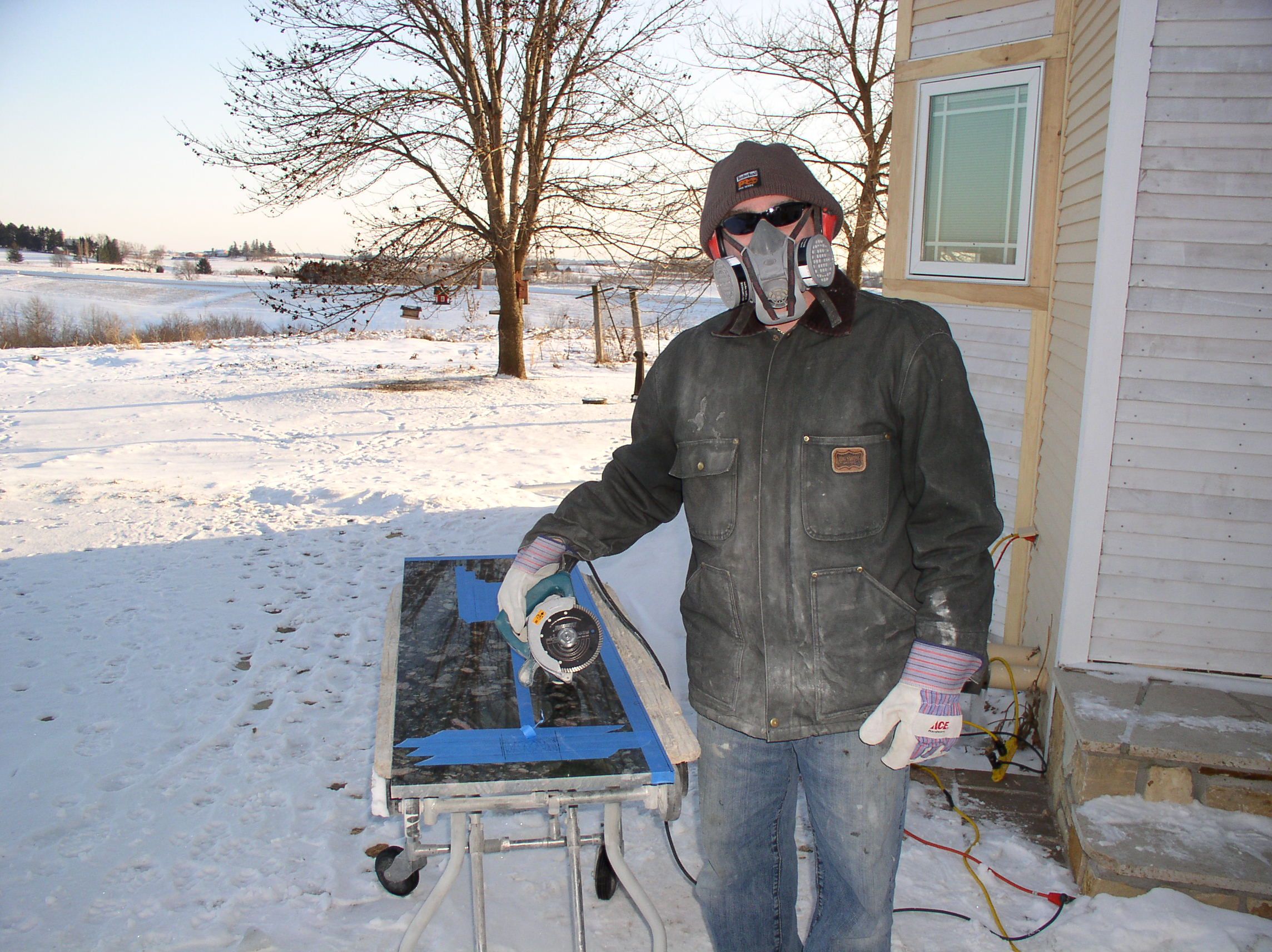 The odd circumstance takes many forms, often comical. We showed up to one jobsite and a 120 lbs woman was holding a 120 lbs male dog on a leash on the other side of a screen door. As he growled a deep, long growl that seemingly emanated from the depths of hell, she told us what a nice dog he was. I assured her I believed he was a great dog, but I’d prefer to install without his presence. She reluctantly shut him in a room off the kitchen, where he proceeded to scratch menacingly at the door. She insisted this was his way of showing how much he wanted to meet us. I normally install at a measured pace, but that day I cooked through the installation like I was on a countdown clock, gladly avoiding the hellhound. Once, when we were installing a kitchen, the satellite-dish installer was working in the same house. He sat on the couch in the living room the entire day, flipping channels and watching TV- and making slight adjustments to the direction the dish pointed. The homeowner and I were amazed the guy’s job consisted of that. The homeowner bemoaned how much he’d spent on medical school when he could have been putting in dishes. He joked about the conversation the guy must have at night with his wife. “How was your day, honey?” “Terrible. There was nothing good on TV.” Another time we finished installing a large kitchen out of Black Galaxy. The owner asked us if her husband could pay us in cash. I told her it was no problem, and when he arrived he pulled out a stack of $100 bills as thick as his wrist. He peeled off enough to pay the bill and thanked us for doing a great job. After we were in the truck on the way home, my install helper Will informed me we just did countertops for one of the biggest drug dealers in town. I was relieved they liked the kitchen.