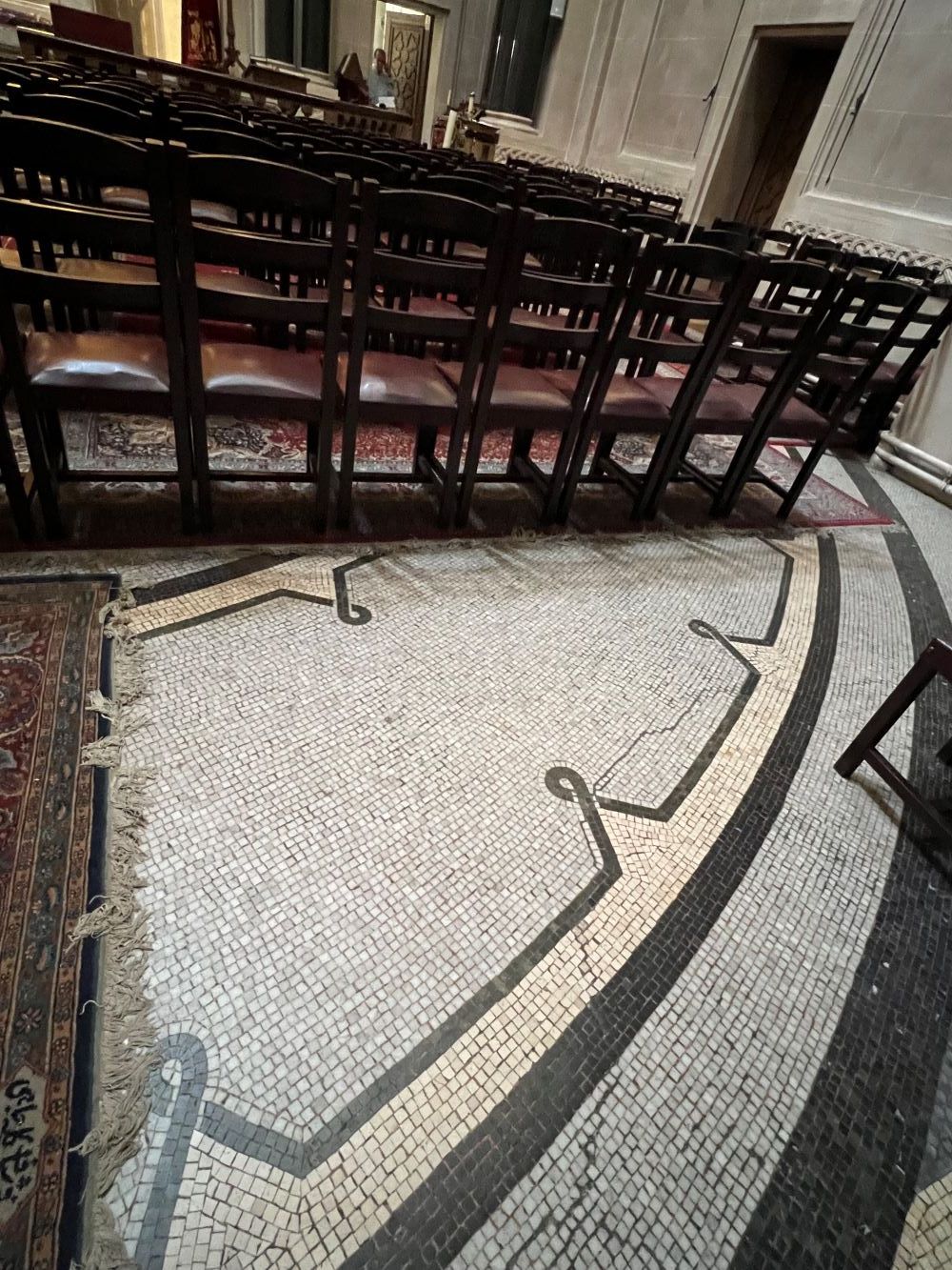 The mosaic floor of the Armenian Cathedral of St. John the Baptist in Paris. (Photo ©2023 Arpi Nalbandian)