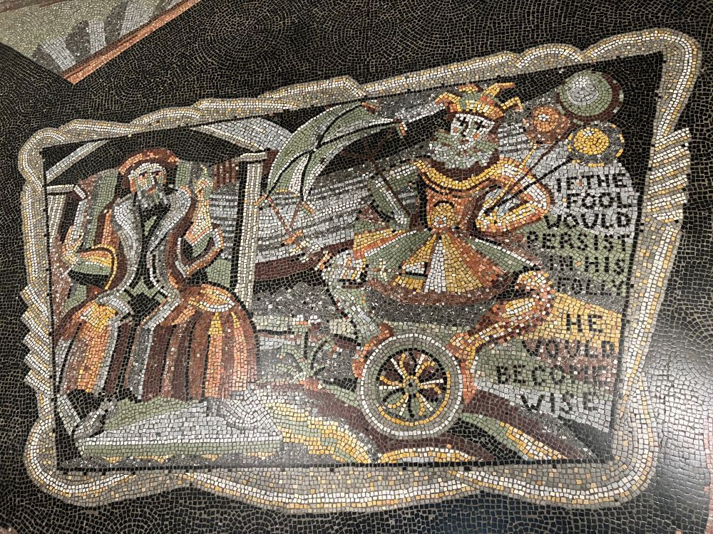 One example of several mosaic tile creations at the Tate Britain by Russian-born artist Boris Anrep to illustrate proverbs by English poet William Blake. (Photo ©2023 Arpi Nalbandian)