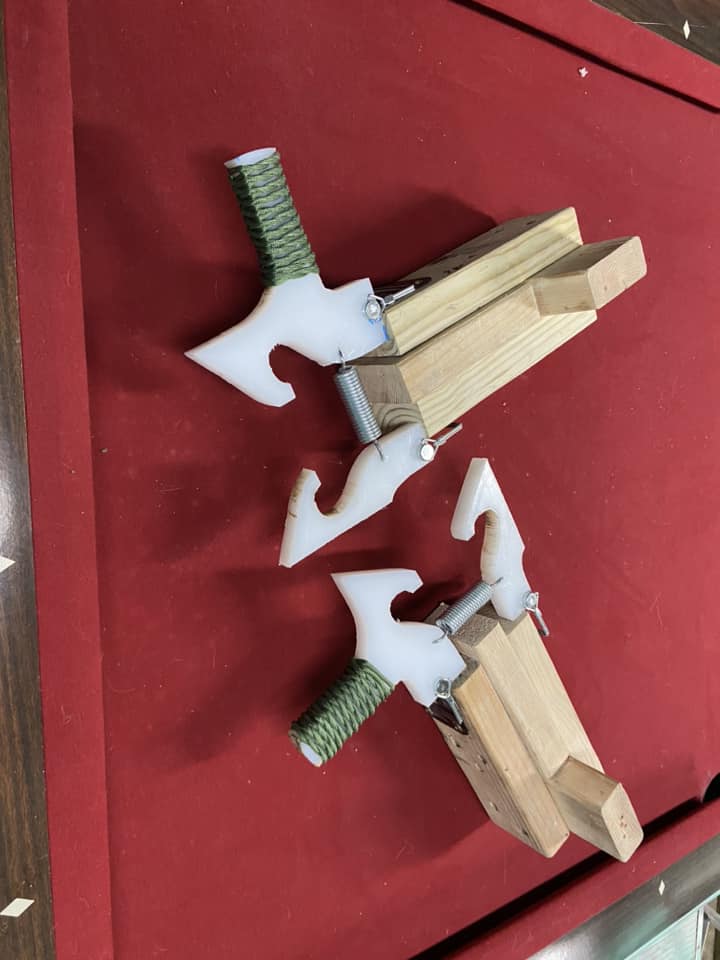 I came up with these for holding the part in place but have not figured out a way to lift them off the cnc yet.