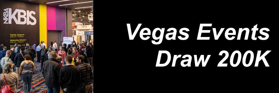 LAS VEGAS – Five major building/home accessory events here Jan. 31-Feb. 2 drew a remarkable 200,000 attendees. The Kitchen and Bath Industry Show (KBIS) and the International Builders’ Show (IBS) drew almost 110,000 attendees from Jan. 31-Feb. 2 at the Las Vegas Convention Center. Three other events running concurrently – the International Surface Event (TISE), the National Hardware Show and the Las Vegas Winter Market – brought attendance to the 200K level. Attendees could visit all the shows at no charge, making it a one-time mega event.