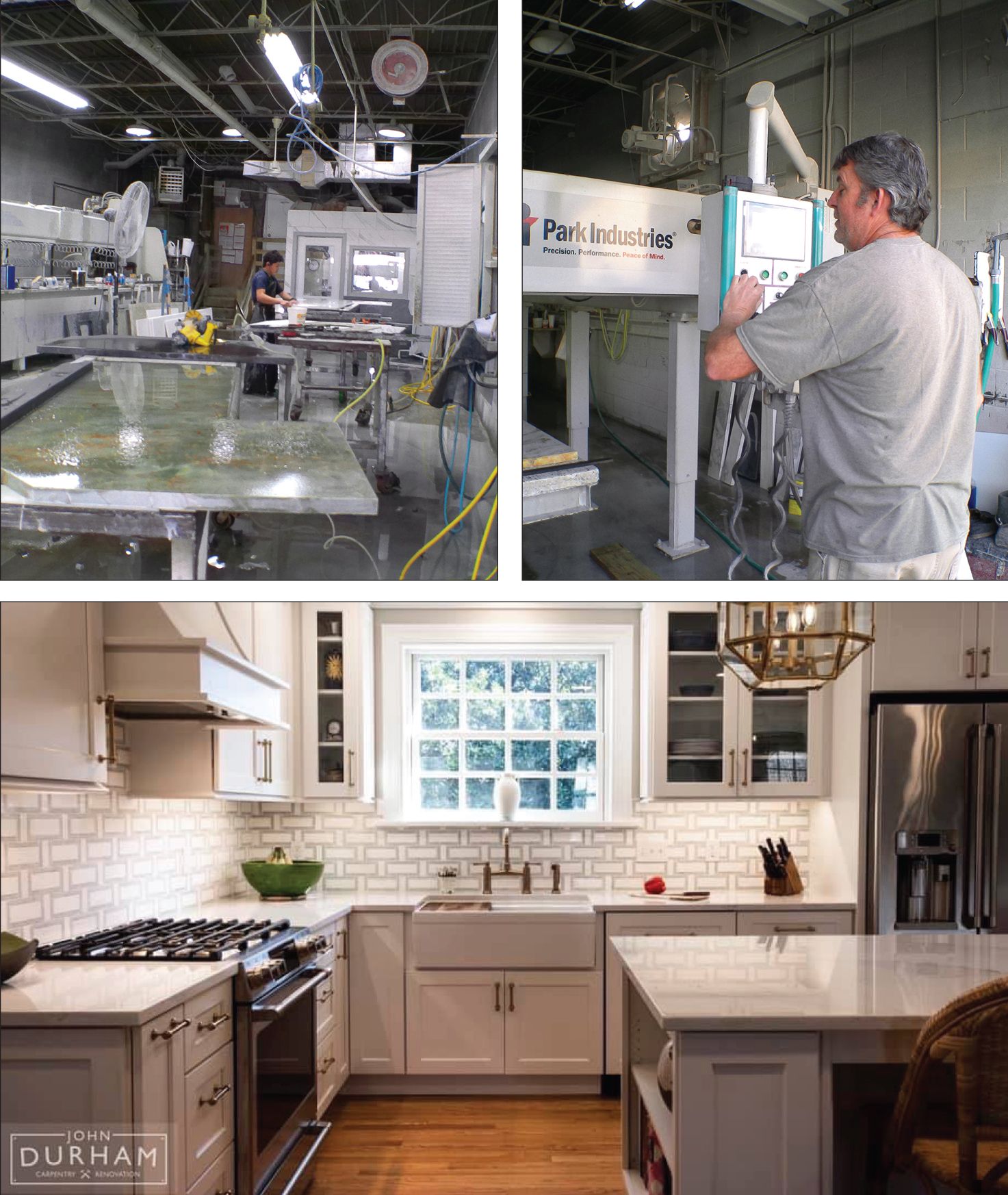 In the 1970s, H.E. Satterwhite, Inc. started fabricating vanity tops, jambs, curbs, and thresholds, in addition to its tile and terrazzo work.The stone products of the company grew over time, and came to dominate the company’s focus. Their first stone saw was an old Tysaman brand, which later became Sawing Systems. Today, stone projects and installation are a major part of the company. H.E. Satterwhite fabricates and installs all types of natural stone and quartz projects. Right alongside the tile work they still do, the stone side installs countertops, shower walls, fireplaces, bars, and anywhere else the customer needs stone. They are a full-service stone and tile shop, offering design, fabrication, installation and repair of natural stone, quartz and slate, plus design, install and repair of tile projects. While they don’t have a specific designer on staff, Debra Graves, the Vice-President of Sales and JR Perkins, the Shop Manager, are always willing to help customers with their tile and stone selections. Their showroom is currently being remodeled, but they do have a slab yard right outside the back door, stocked with mostly locally-sourced slabs for customer convenience. Their website address appropriately states exactly what they do: countertopinrichmondva.com. And even though their name isn’t on their website address, it doesn’t seem to matter. Debbie admitted that a lot of their business is word of mouth, which they feel is a direct result of their excellent customer service. However, they also have professional relationships with many area builders and architects, some going back 30 years. Most of their tile work is for commercial projects, while most of their stonework is residential. H.E. Satterwhite is a member of the Natural Stone Institute and their local Better Business Bureau (BBB) chapter. They also have profiles on Facebook, Instagram, and Houzz. Plus, they enjoy a 5-star rating on Google, which also helps bring in business. OSHA has been to their shop and found everything to be in-line with their standards, but the shop itself is not OSHA certified.