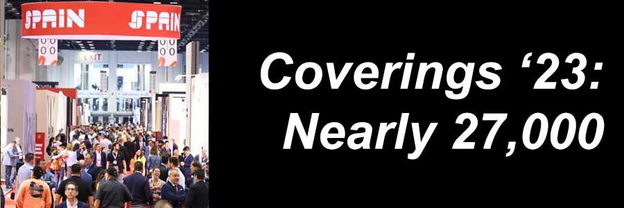 ARLINGTON, Va. – Taffy Event Strategies, the organizers of Coverings, announced that Coverings 2023 exceeded expectations with a 50% year-over-year increase in attendance. The ceramic tile and natural stone event ran April 18-21 in Orlando, Fla. The numbers rivaled pre-pandemic levels. The show took in 450,000 ft2 of exhibition space and featured exhibitors from 40 different countries, totaling more than 1,000 exhibitors. International exhibitors made up 74% of that number, while 77% of attendees were from the U.S.