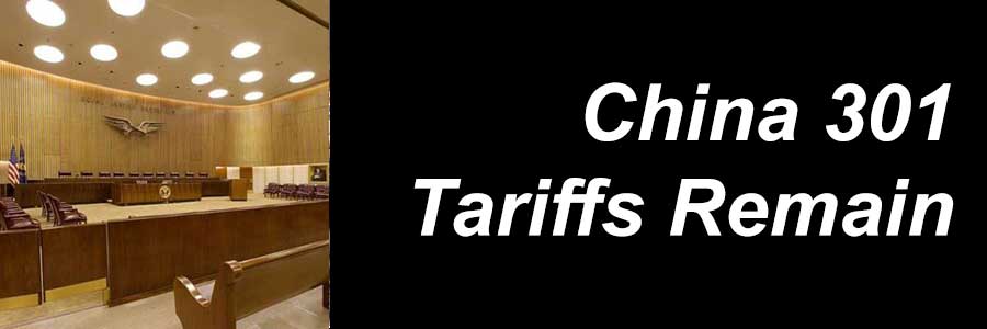 NEW YORK – The federal Court of International Trade ha ruled that the Section 301 tariffs on almost all goods imported from China will remain in place.