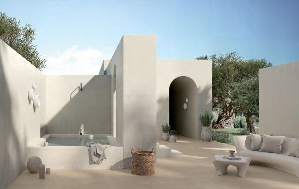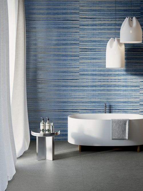 Poetry Net and Poetry Stone Reloaded (pictured) stem from ABK’s collaboration with Paola Navone OTTO Studio. These new tile collections capture the art of tie-dye while combining versatility with original, decorative appeal. Both collections are complemented by the solid colors of Alterego and the timeless elegance of the travertine-inspired Sensi Roma. (Image courtesy ABK Group)