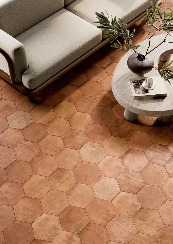 The Petite collection from Fioranese seamlessly blends tradition and contemporary design, celebrating the charm of historic villages. Inspired by French terracotta floors, it’s available in four colors (Avorio, Rosa, Cotto and Nero) ideal for both indoor and outdoor applications. The collection comes in multiple sizes: 20.3cm x 40.8cm, 20.3cm x 20.3cm, hexagonal (12.5 cm side) and brick (6.6cm x 20.3cm). Glossy majolica bricks are also available. (Image courtesy Fioranese Ceramica)