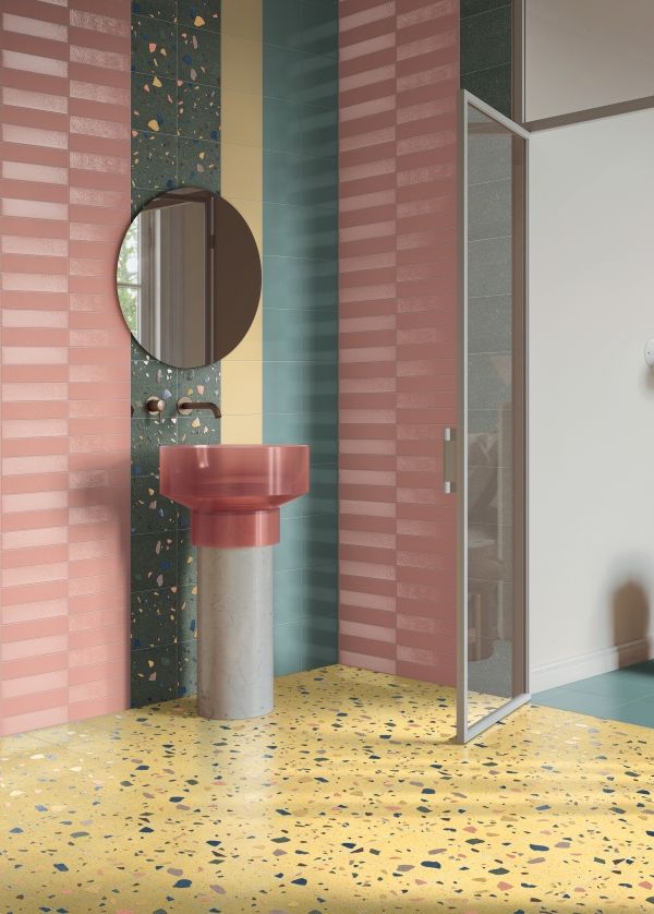 Aptly named Forever Color … as color is the soul of the latest porcelain tile collection by Cir Manifatture Ceramiche. With 11 available hues, Cir (part of Gruppo Romani SpA) revives the tradition of smaller-sized tile (20cm x 20cm square tile and a 6cm x 25cm brick tile). The iconic speckled texture of terrazzo, reinterpreted in the Shot blast option, reveals a rich, intricate three-dimensional surface. (Image courtesy Cir Manifatture Ceramiche)