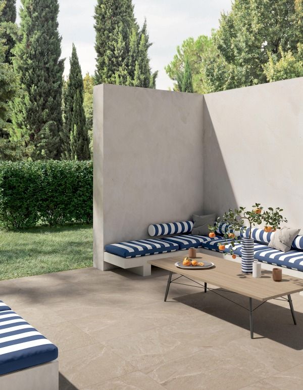 Desvres Ariana’s collections combine attractive design with practical performance, ideal for both indoor and outdoor settings. Camouflage features a concrete effect, while Falaise stands out for its slate-inspired textures enhanced by eye-catching 3D details. (Image courtesy Desvres Ariana)