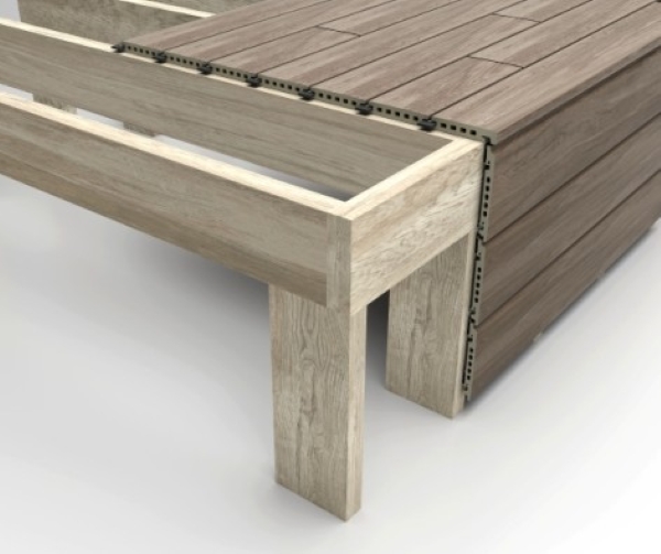 Among several new tile collection launches, Spanish manufacturer Gres Aragón-Faveker launched Aradeck, A raised-access floor that features extruded tiles, with all the high-tech performance typical of extrusion techniques. It is a dry-installation raised-access floor system, incorporating extruded porcelain boards. Aradeck can be laid on plots and joists. “What sets it apart from other systems,” the company notes, is “the fact that it can also be laid on wooden structures on flat roofs and terraces and in many areas of the home or other buildings.” (Image courtesy Gres Aragón-Faveker)