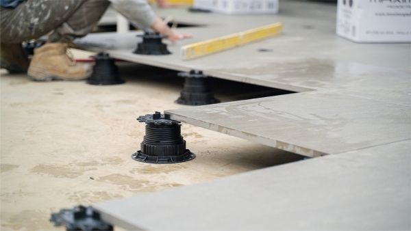 From Laticrete is the newly unveiled NXT® Pedestal System, a modular, fully adjustable solution for raised surface applications. With just three core pedestal components and a full line of accessories, the system delivers a streamlined way to achieve precise height and slope adjustments for raised pedestal pavers on rooftops, terraces, and other outdoor spaces.(Image courtesy Laticrete)