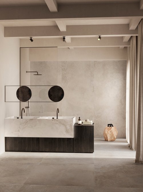 The collaboration between Florim and Matteo Thun grows stronger with the SensiTerre collection, a porcelain coverings project that “reimagines the world of clay, combining craftsmanship with technological innovation.” (Image courtesy Florim)