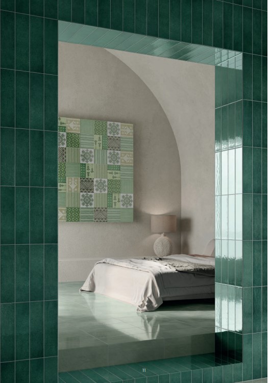 Cerasarda’s newly unveiled tile series, Costa Dorata, celebrates Sardinian imagery; 10 unique solid colors in this series effortlessly reflect calming light. (Image courtesy Cerasarda}
