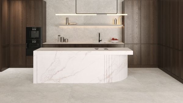 Ascot Gruppo Ceramiche’s latest large format porcelain tile panel, Slabs, is a rectified glazed porcelain panel collection measuring 120cm X 280cm (48"x110"). Offered in 10 various nature-inspired graphics – marble, wood, stone, and cement – the material is suitable for walls, sinks, kitchen islands and countertops, and more. (Image courtesy Ascot Gruppo Ceramiche)