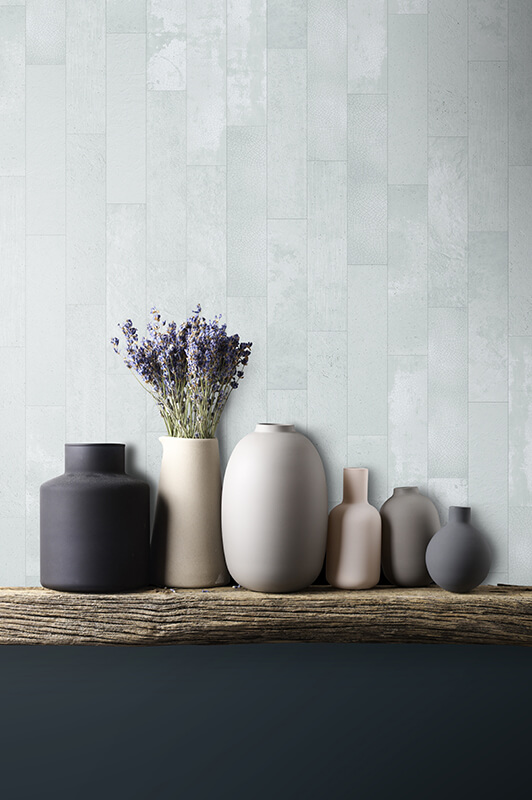 From Sottocer is the Fusion wall tile collection. Offered in seven earthy shades (Coco, Sienna, Ghost, Lake, Sage, Desert, and Dune) in a 5cm X 25cm X 0.87cm format. (Image courtesy Sottocer)
