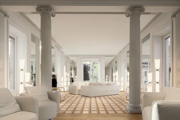 Timeless parquet flooring is recreated with two of Versace Ceramics’ latest tile introductions – V Stone and Leatherwood. V Stone evokes materials found within Palazzo Versace; the Leatherwood series that emulates the textures and aesthetic qualities of wood and leather. (Image courtesy Versace Ceramics)